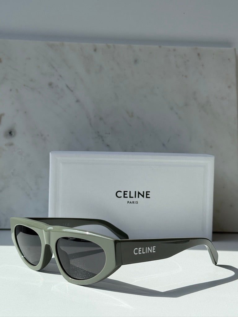 Celine CL40276U Bold 3 Dots Transparent Green Oval Sunglasses