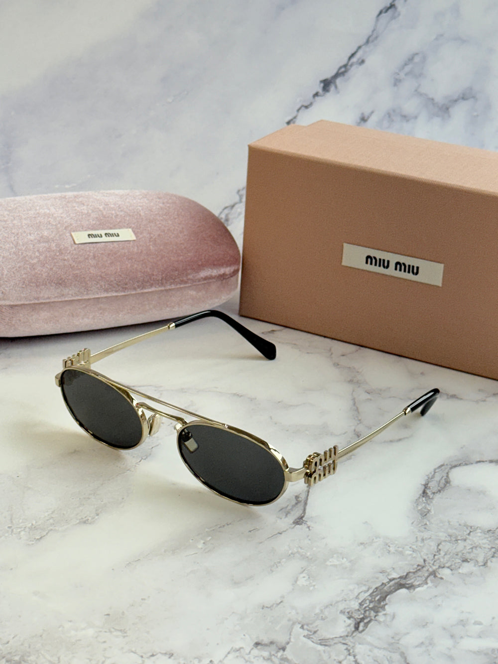 Miu Miu MU A52S Gold Grey Metal Sunglasses