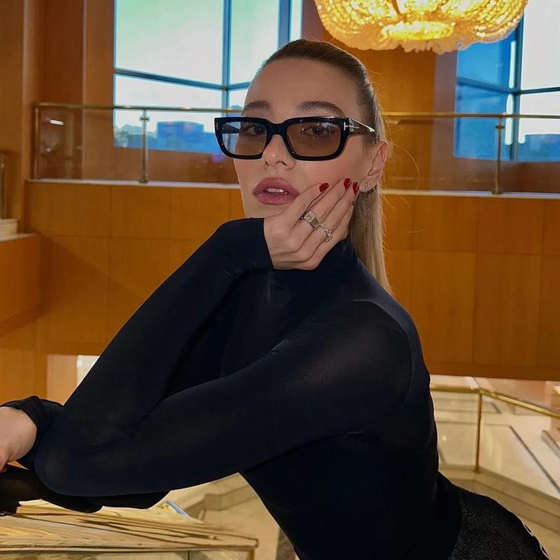 Tom Ford Esme FT1157 Square Sunglasses in Black Yellow Lens