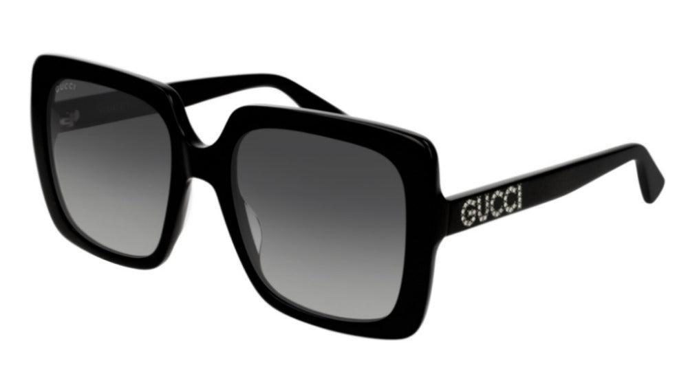 Gucci GG0418S Black Square Crystal Logo Sunglasses