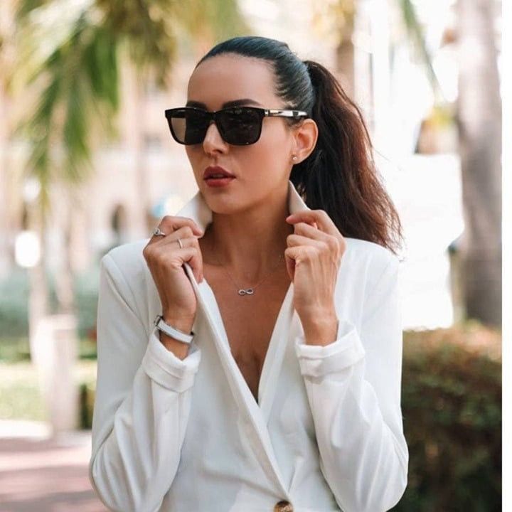 Logotipos dorados. Lentes gris oscuro. 100% protegido contra los rayos UVA.