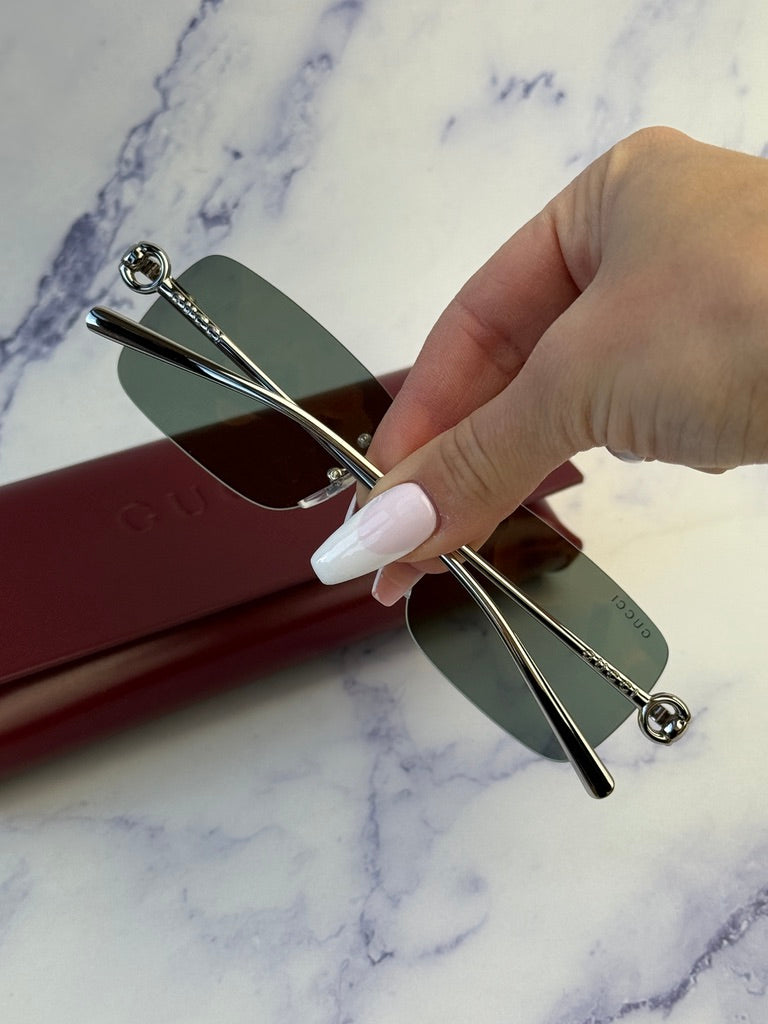 Brand new Gucci GG1703S 003 Silver Rimless Square Sunglasses.