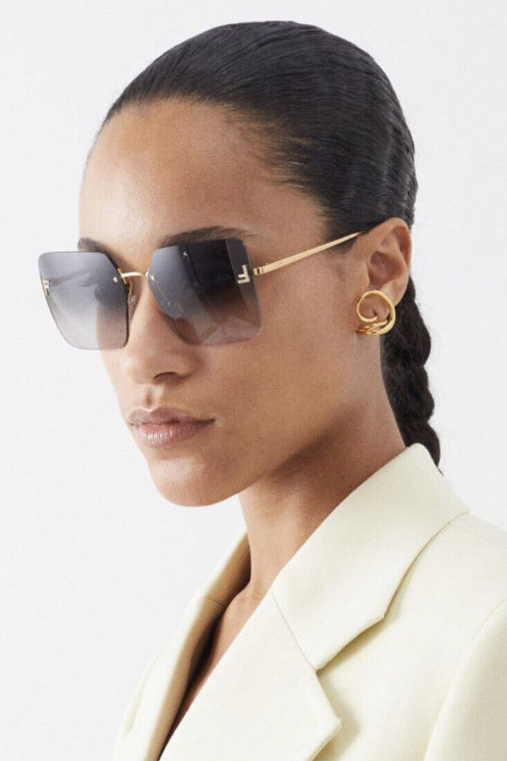 Fendi Sky FE40115U Rimless Gold FF Logo Aviator Sunglasses